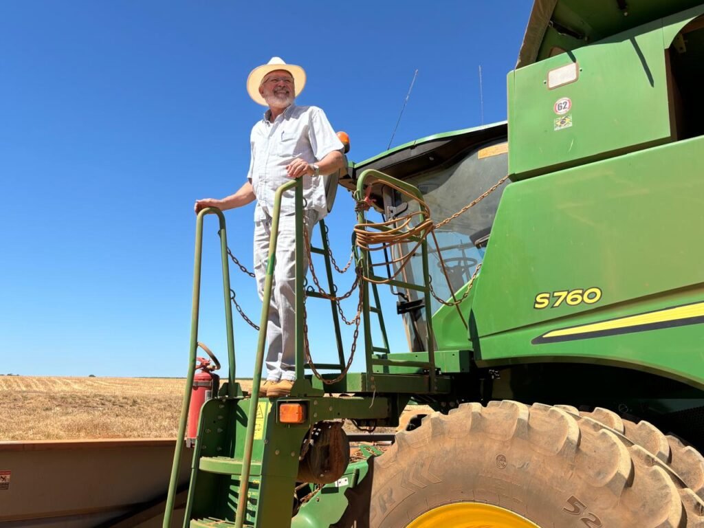 A propriedade da família, a Fazenda Brejinho em Pedro Afonso -TO, foi adquirida ainda na década de 1940 e, ao longo dos anos, passou por diferentes ciclos produtivos até consolidar a soja como uma das principais atividades. Segundo o produtor, o interesse pela cultura surgiu a partir da convivência com o campo e do desejo de dar continuidade ao trabalho iniciado pelas gerações anteriores.